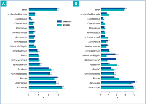 Figure 3. Prebiotic and placebo microbiota composition in children at baseline (A) and following antibiotic therapy (B).