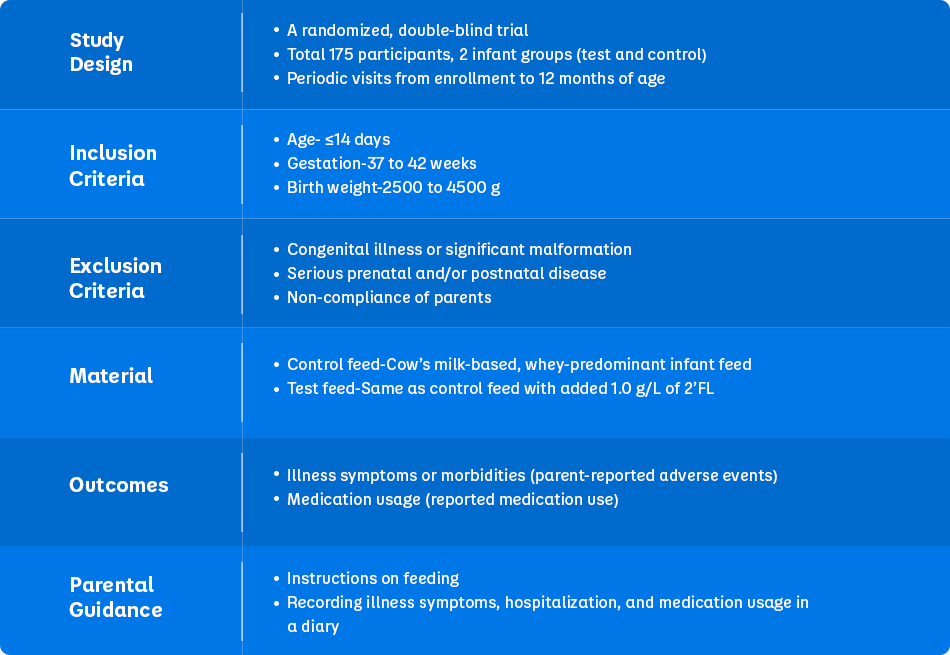 HMOs are a vital component of human milk, contributing to the overall well-being of infants. This randomized trial showed that infant feeds with HMO (2’-FL) are safe and well-tolerated in infants. HMOs help in improving immunity and fighting infections. Infants fed on feeds with HMO such as 2’-FL show lesser incidence of infections such as bronchitis and LRTIs. These infants also need fewer antipyretics and antibiotics to combat morbidities.